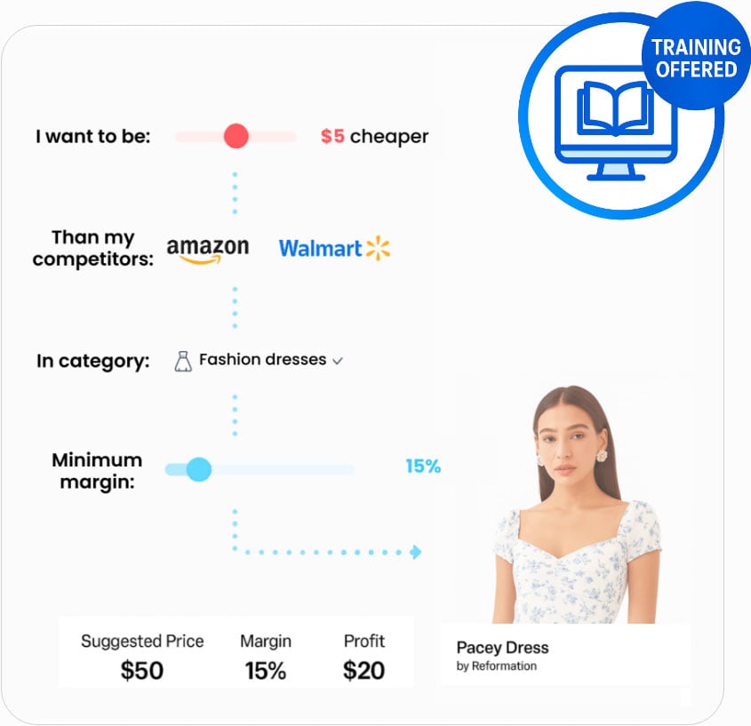 Dual Al engine: Combine two machine learning models, one forecasting demand trends, the other scoring price elasticity, generating pricing recommendations.